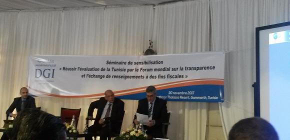 Participaton de tuntrsut au Seminaire de sensibilisation "Reussir l'évaluation de la Tunisie par le Forum mondial sur la transparence et l'échange de renseignement à des fins fiscales"
